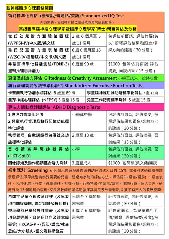 - 兒童腦神經思維功能發展的評估及訓練治療計劃